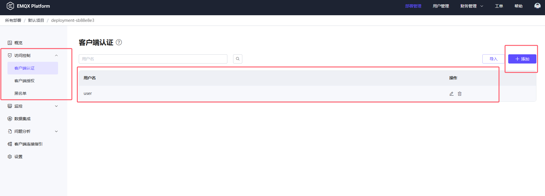 在访问控制-客户端认证中添加一个客户端,用户名“user”密码“password”