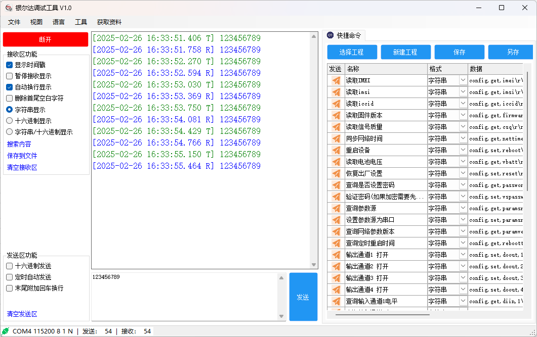 打开串口测试工具,发送数据可以看到实现了自发自收。