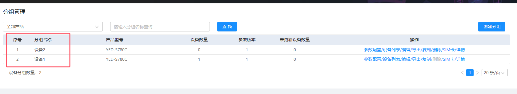 在DTU参数配置平台创建两个分组,一个分组一台设备。