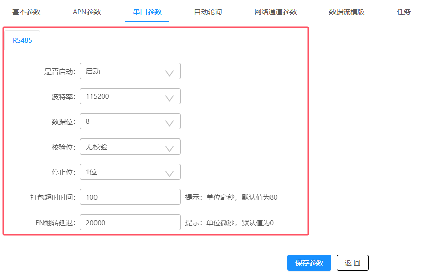 配置完参数后,点击保存参数,断电重启设备,等待设备更新参数。