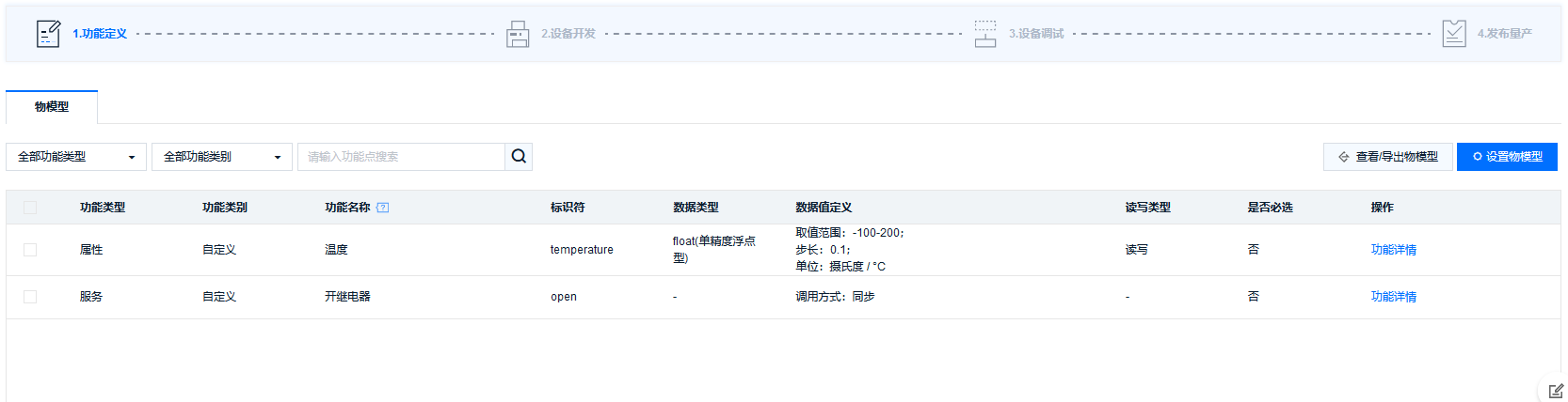 可以使用标准的物模型产品,也可以自己定义数据点。