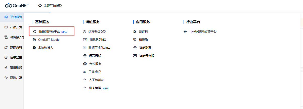 进入连接:https://open.iot.10086.cn。整体流程是创建产品,配置参数,更新参数,使用任务处理topic。