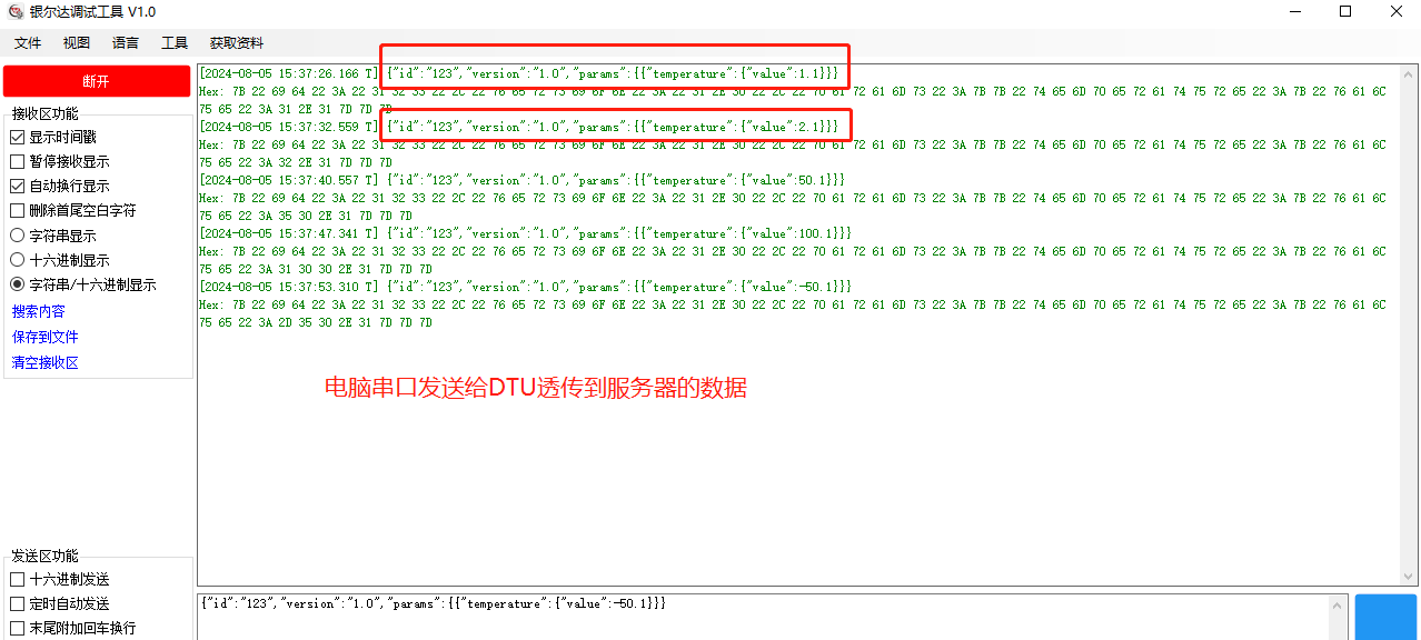 把上面的任务拷贝到DTU的任务里面,保存参数,重启设备更新参数就可以开始测试了。
