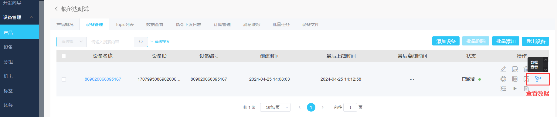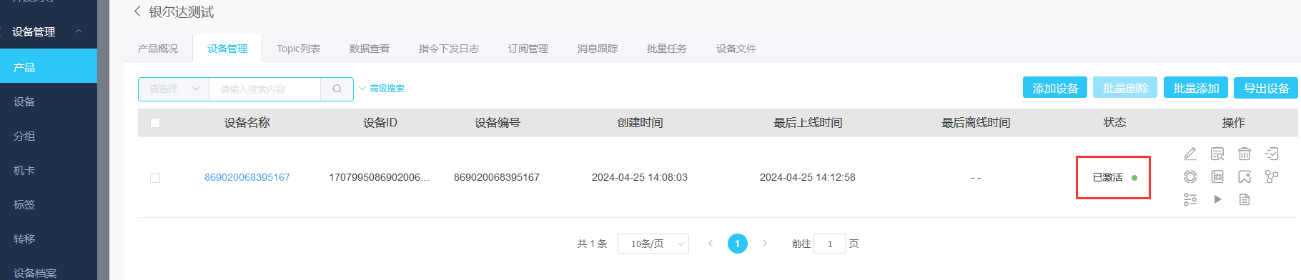 如果参数正确,刷新页面,就能看到新增加的设备就激活了。