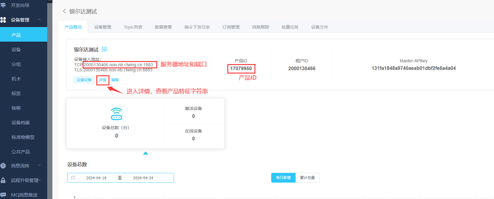 3.2、获取产品接入地址等信息