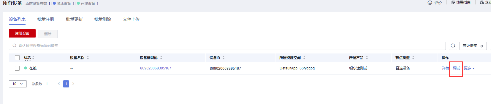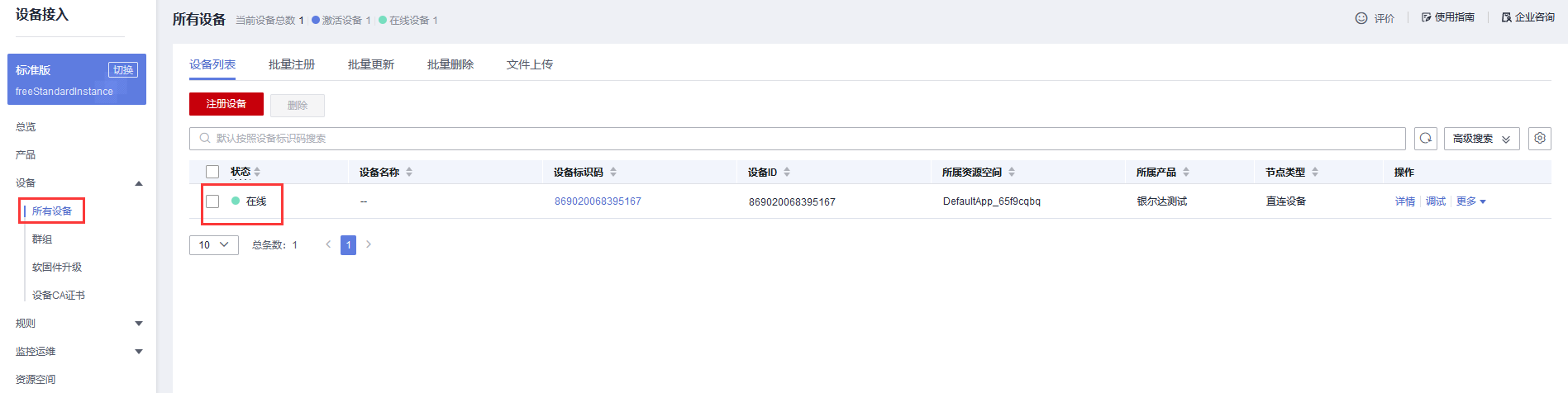 如果参数正确,在设备,所有设备,就能看到DTU自动注册的设备,设备使用IMEI注册的。