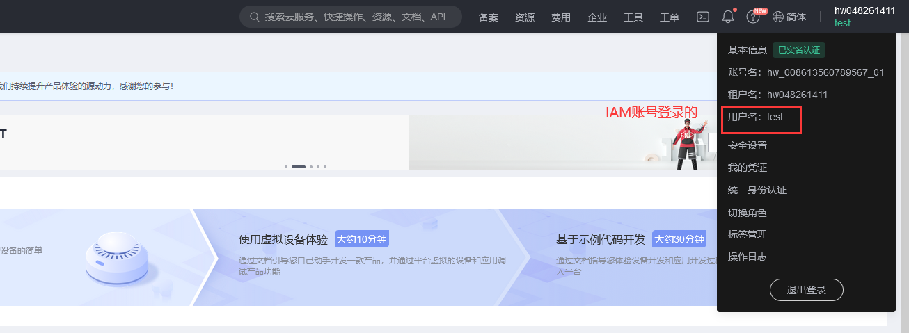创建IAM账号,首先主账号,开通IAM账号。然后换成IAM账号登录,然后获取IAM账户信息。