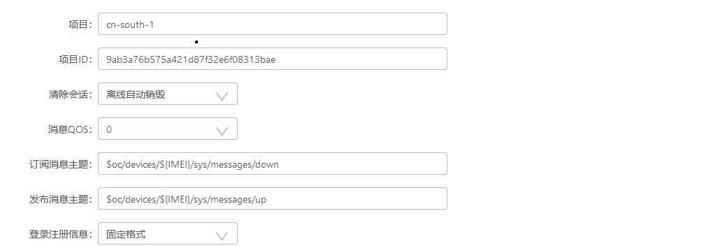 topic中的device id就是模块的IMEI,可以通过config,get,imei获取。