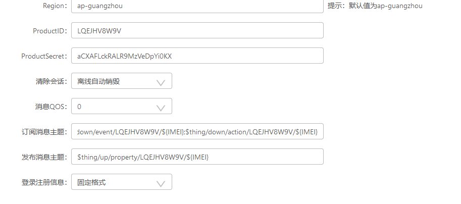 注意topic用${IMEI}变量替代。