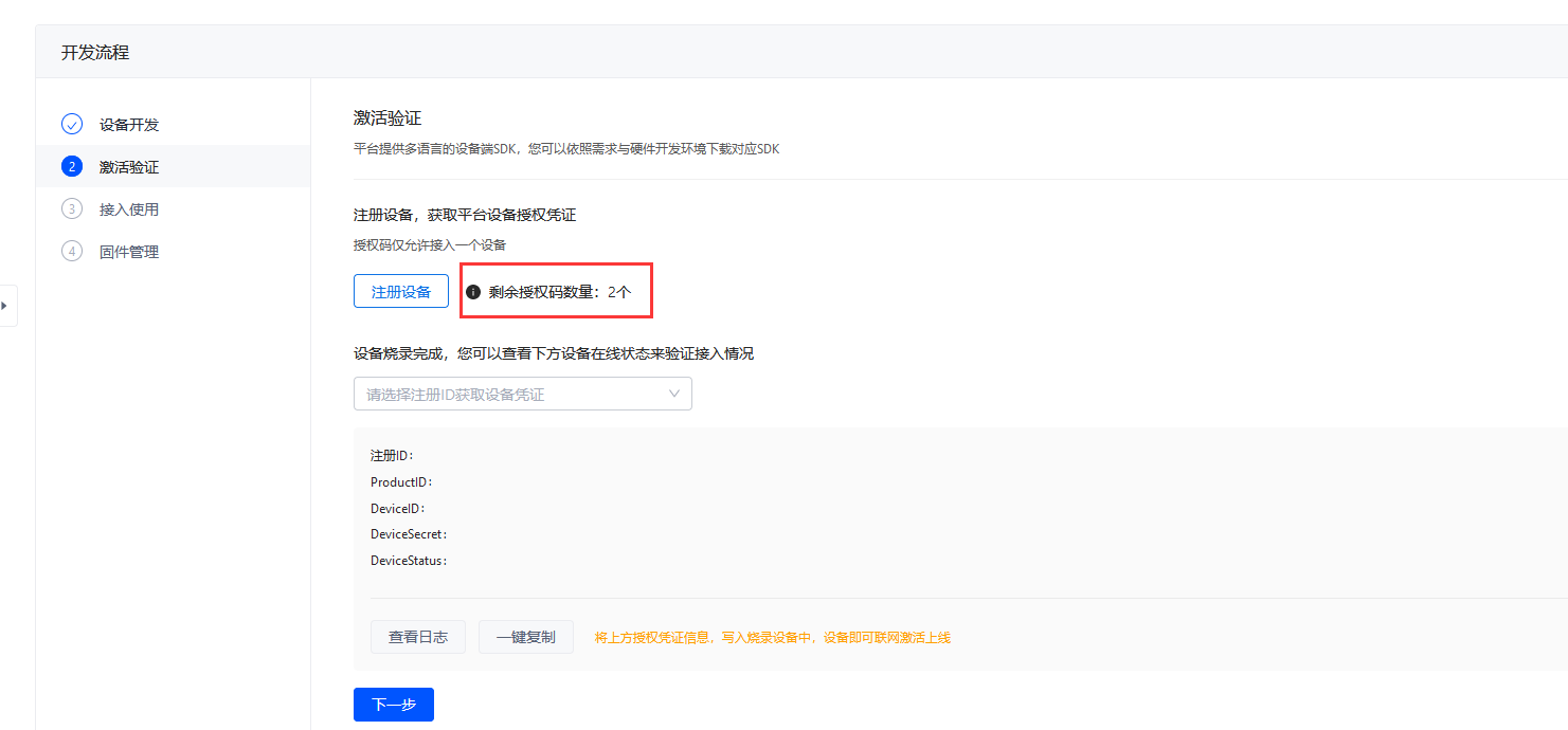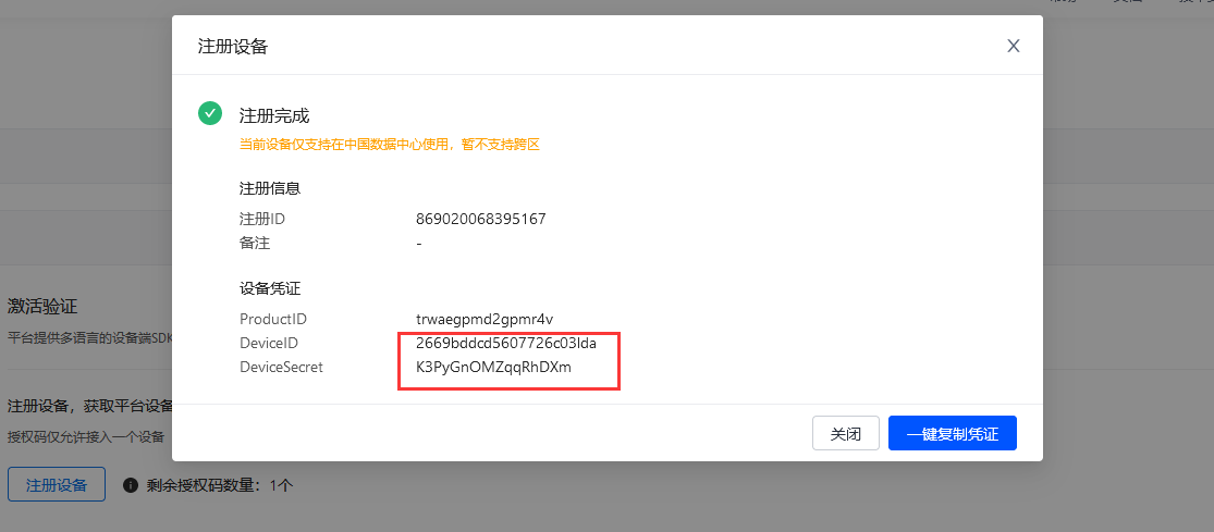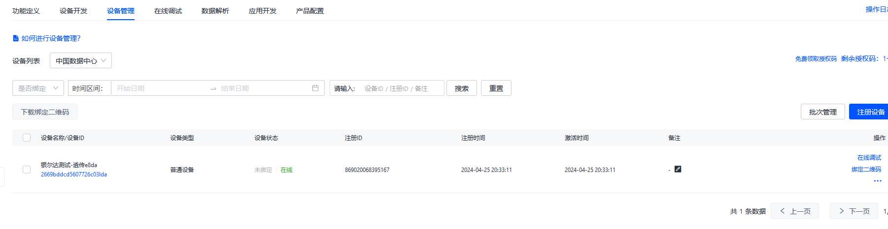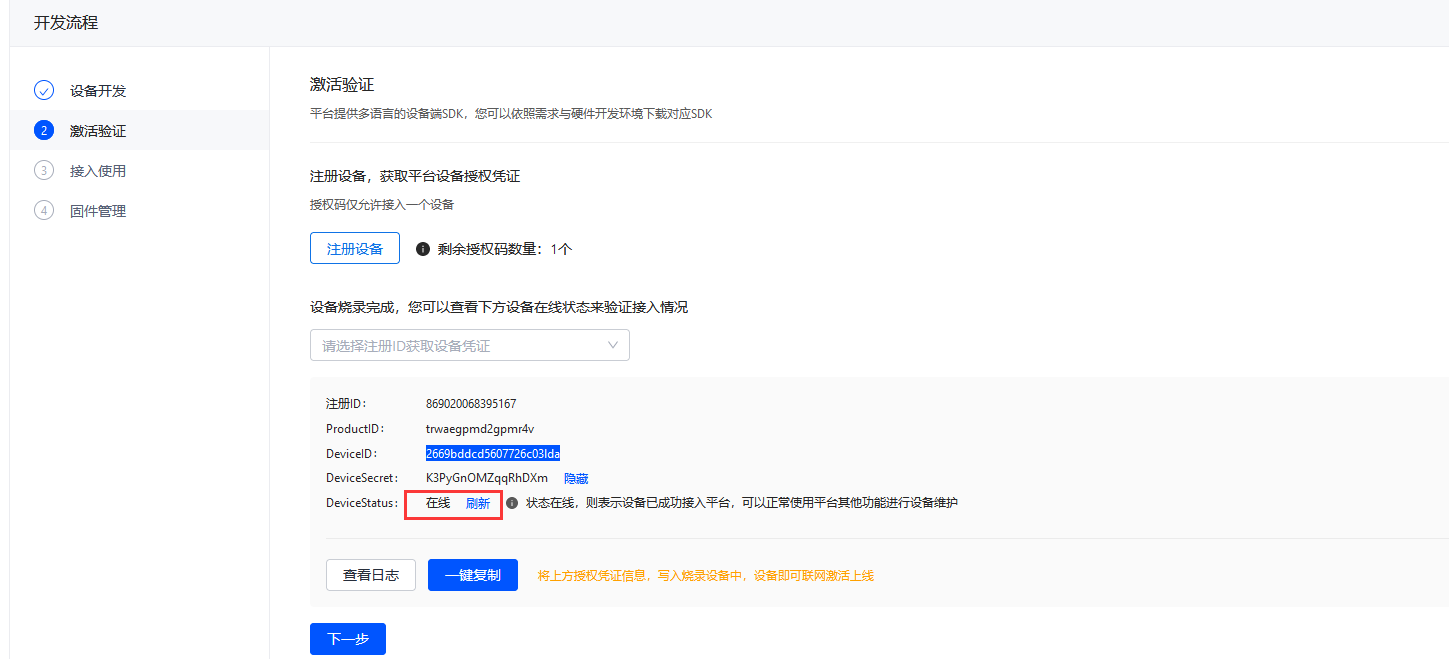 如果参数正确,自动激活设备,设备显示在线,可以刷新页面。