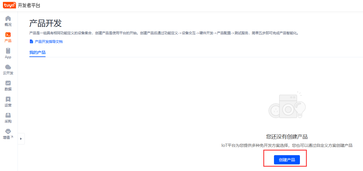 进入连接:https://www.tuya.com/cn。整体流程是创建产品,配置参数,更新参数,使用任务处理topic。