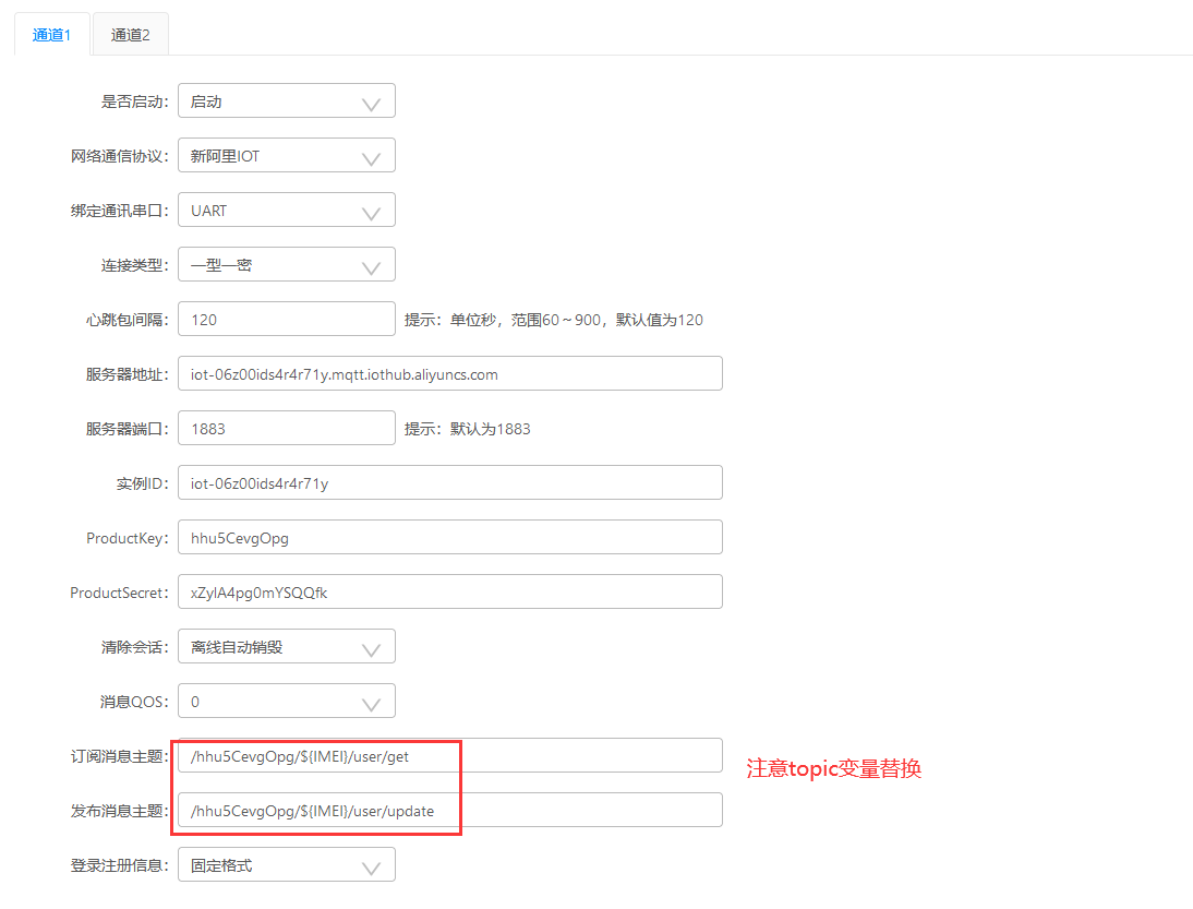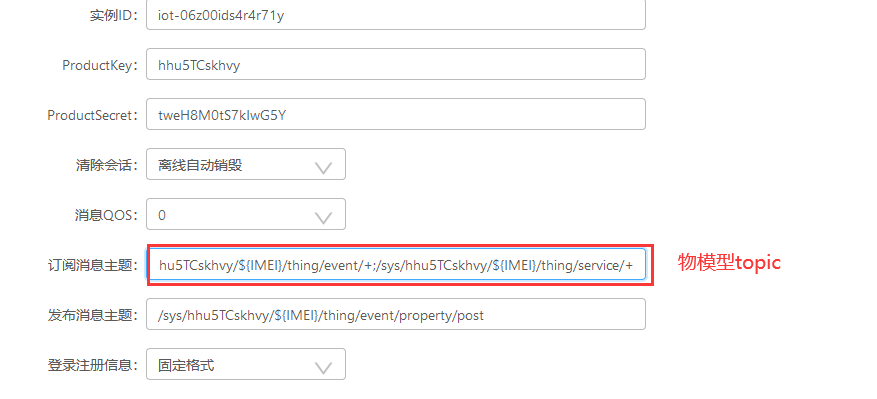 注意topic用${IMEI}变量替代,在topic类列表,自定义Topic中,