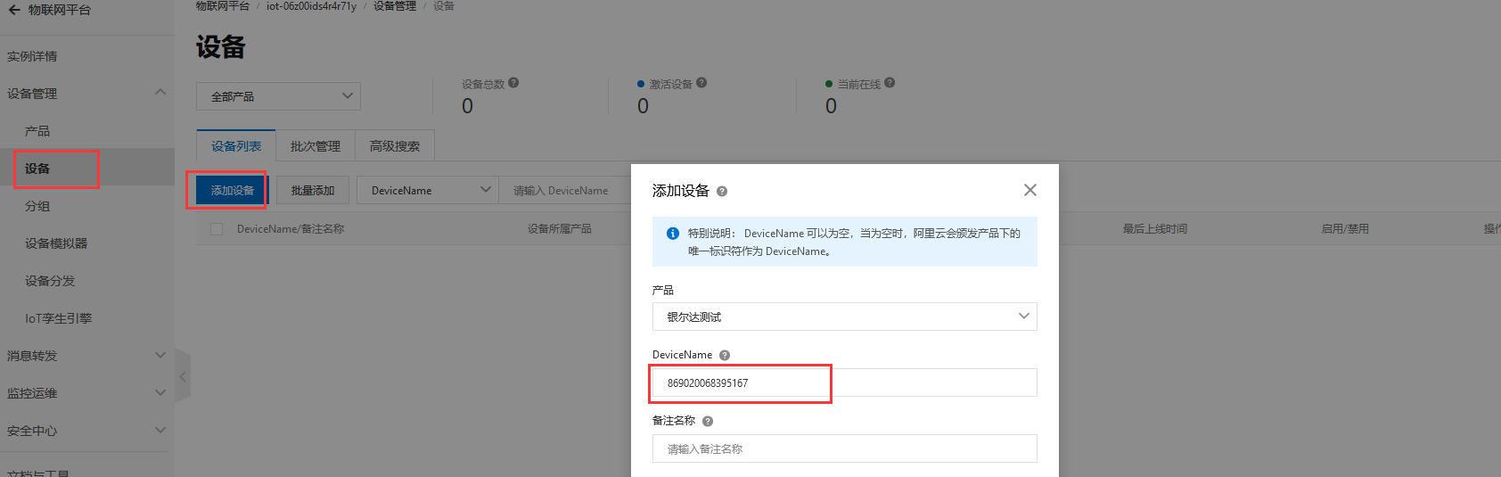 设备,添加设备,使用IMEI在平台提前添加设备,这个可以用表格批量添加,销售出货的时候可以提供设备IMEI。