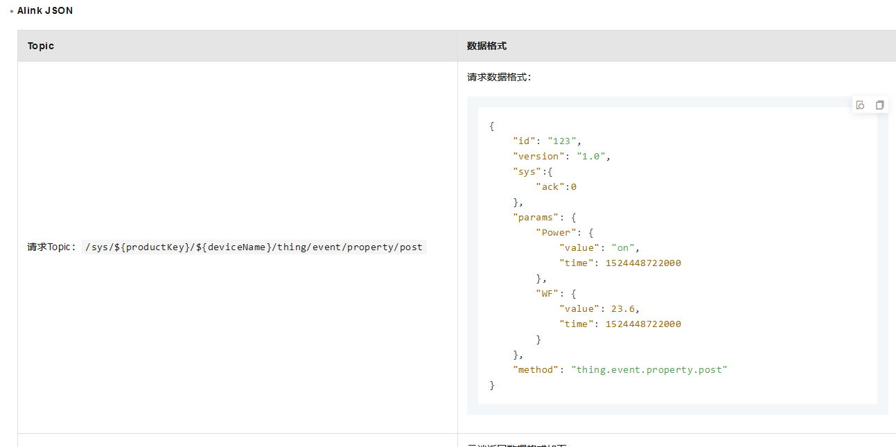 数据上报格式必须遵循平台物模型格式,本质就是json组织和topic组装,参考官方资料: