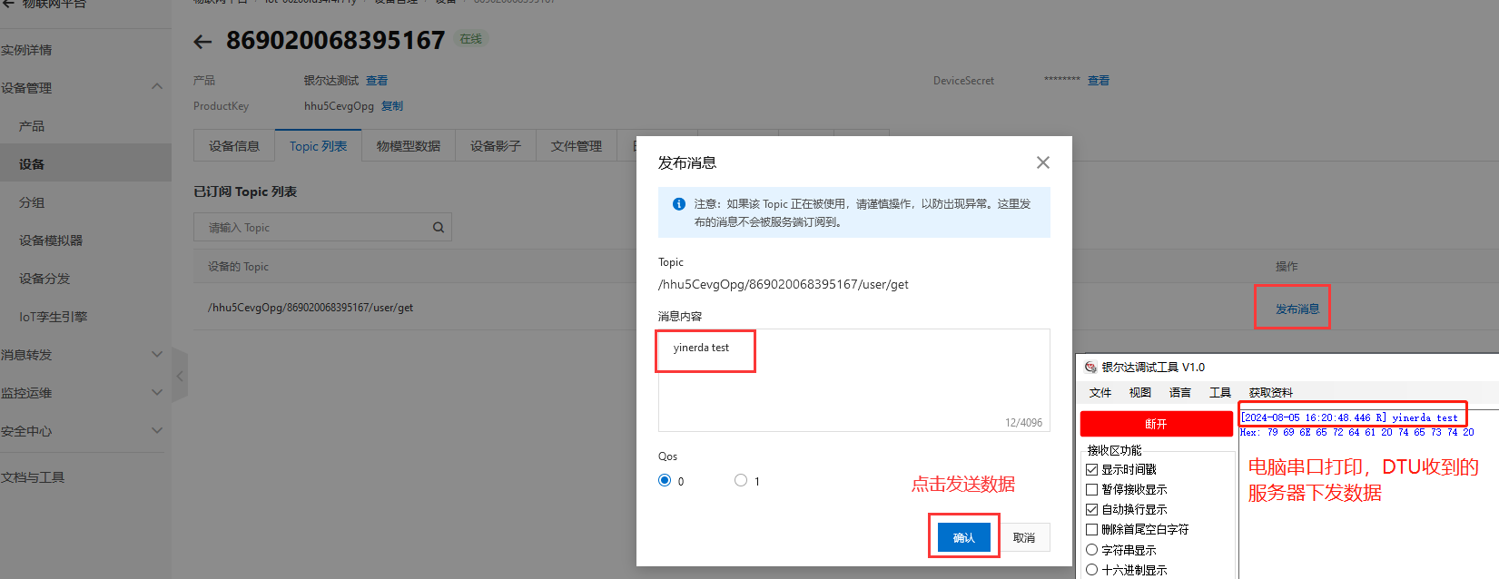 DTU发布消息主题填: /hhu5CevgOpg/${IMEI}/user/update