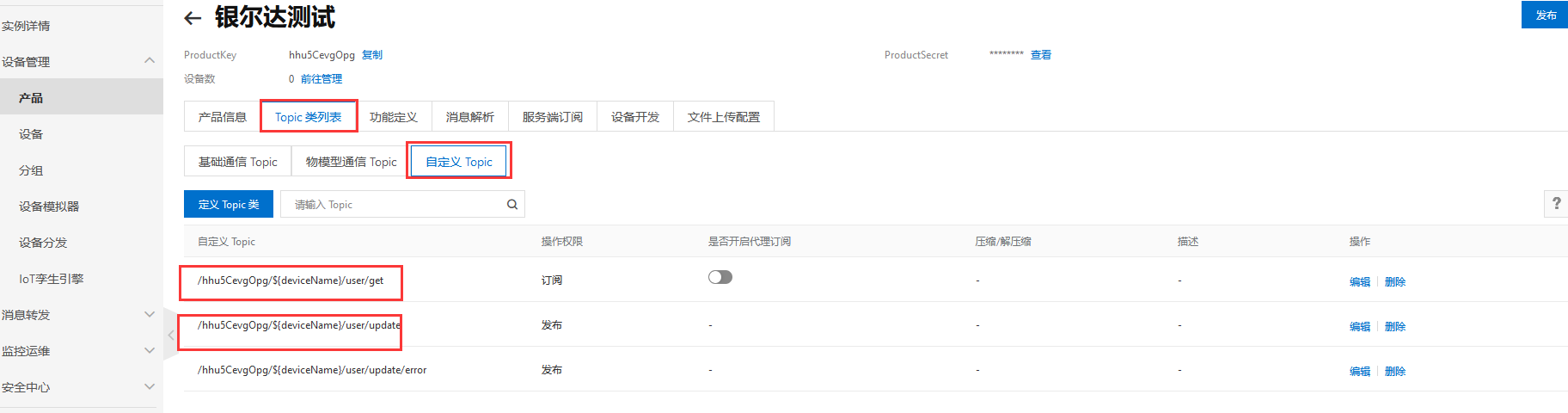 /hhu5CevgOpg/${deviceName}/user/get 和 /hhu5CevgOpg/${deviceName}/user/update