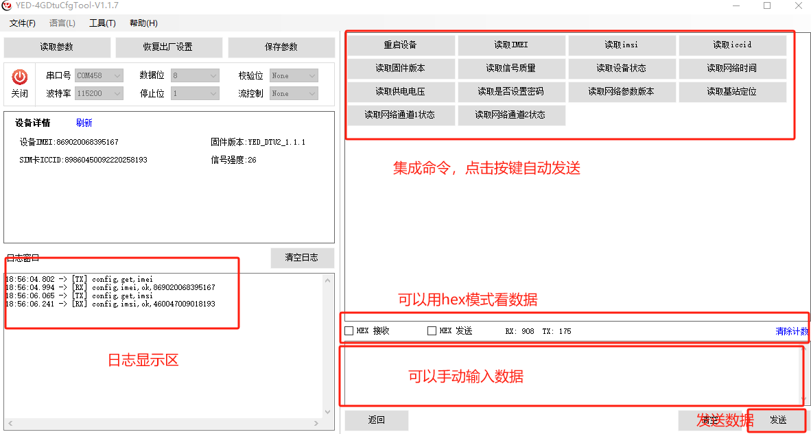 点击工具,可以进入命令调试工具界面,可以当串口调试工具使用。