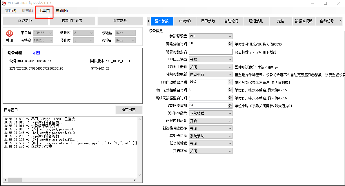 4GDtuCfg工具下载链接:https://yinerda.yuque.com/yt1fh6/4gdtu/rfvpd0gwbr6vhfb4#