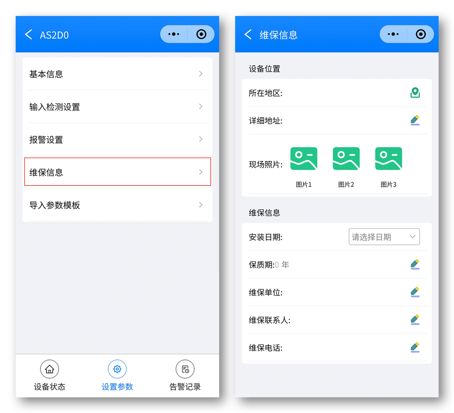 维保信息可以作为设备安装信息的记录补充,可以设置设备安装位置、现场安装照片上传、安装日期与保质期管理、以及维保公司与人员联系方式记录。这些功能用户可以方便掌控设备的安装与维保情况,提高管理效率。