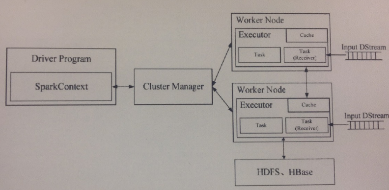 - 创建DStream (Discretized Stream),定义数据源,Receiver组件在收到数据后会提交给用户自定义的Spark Streaming处理逻辑Task处理。