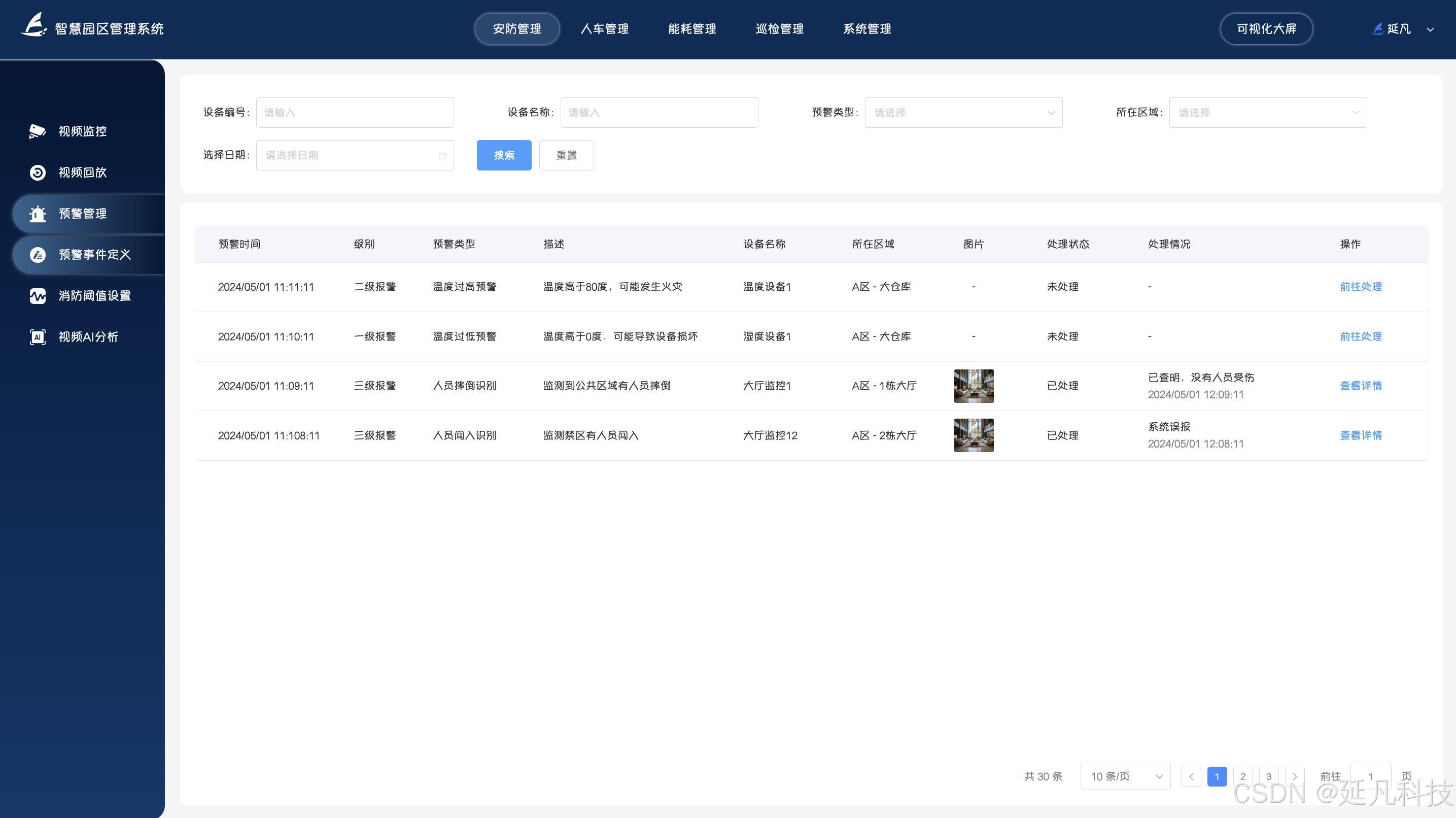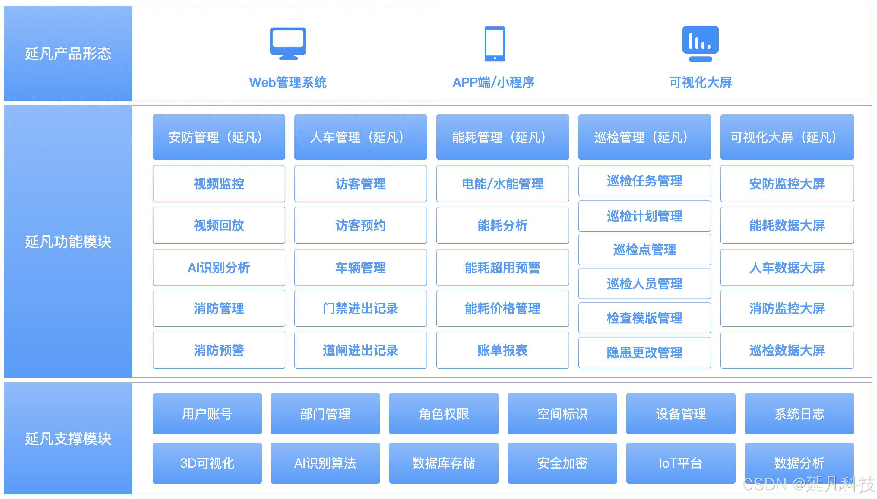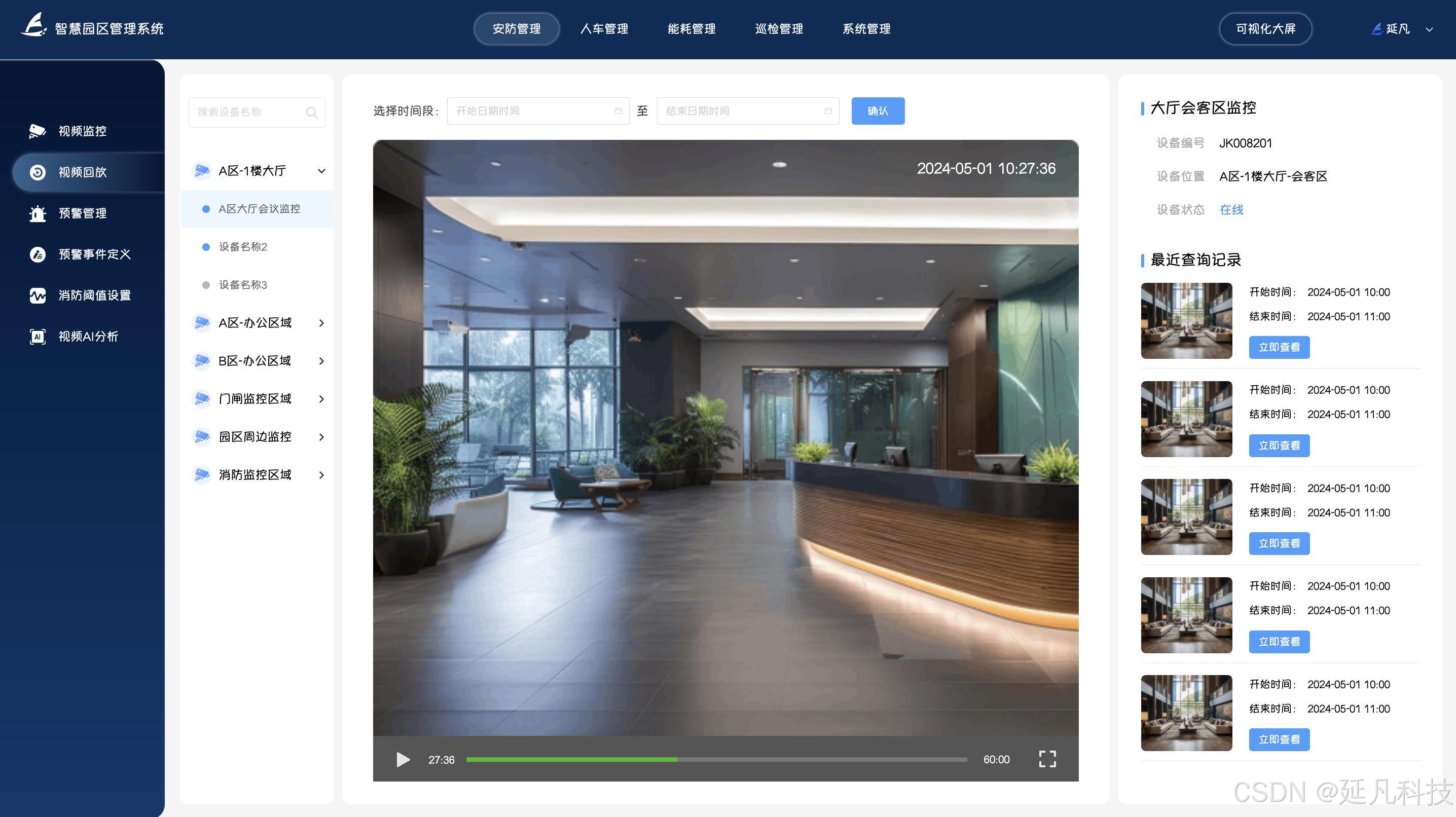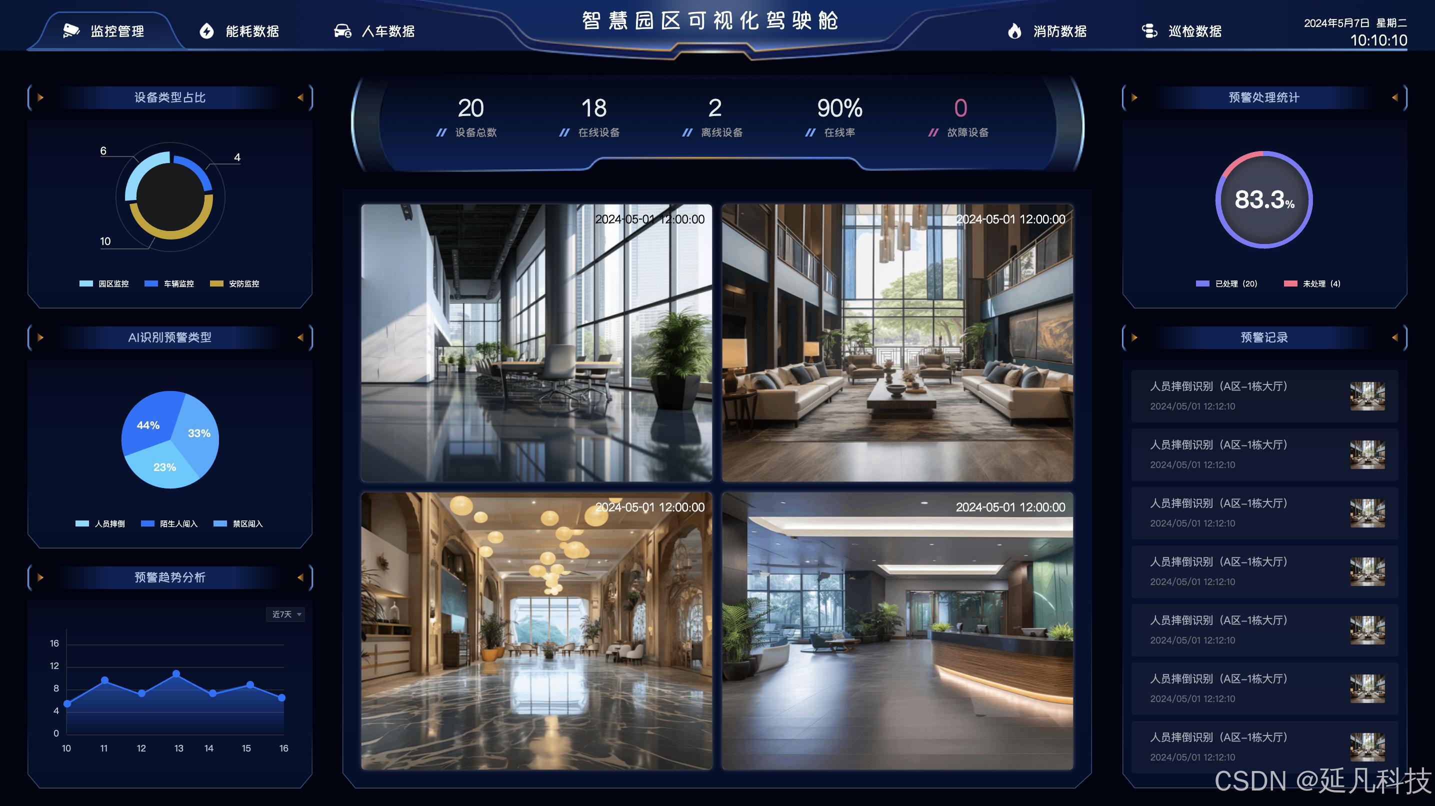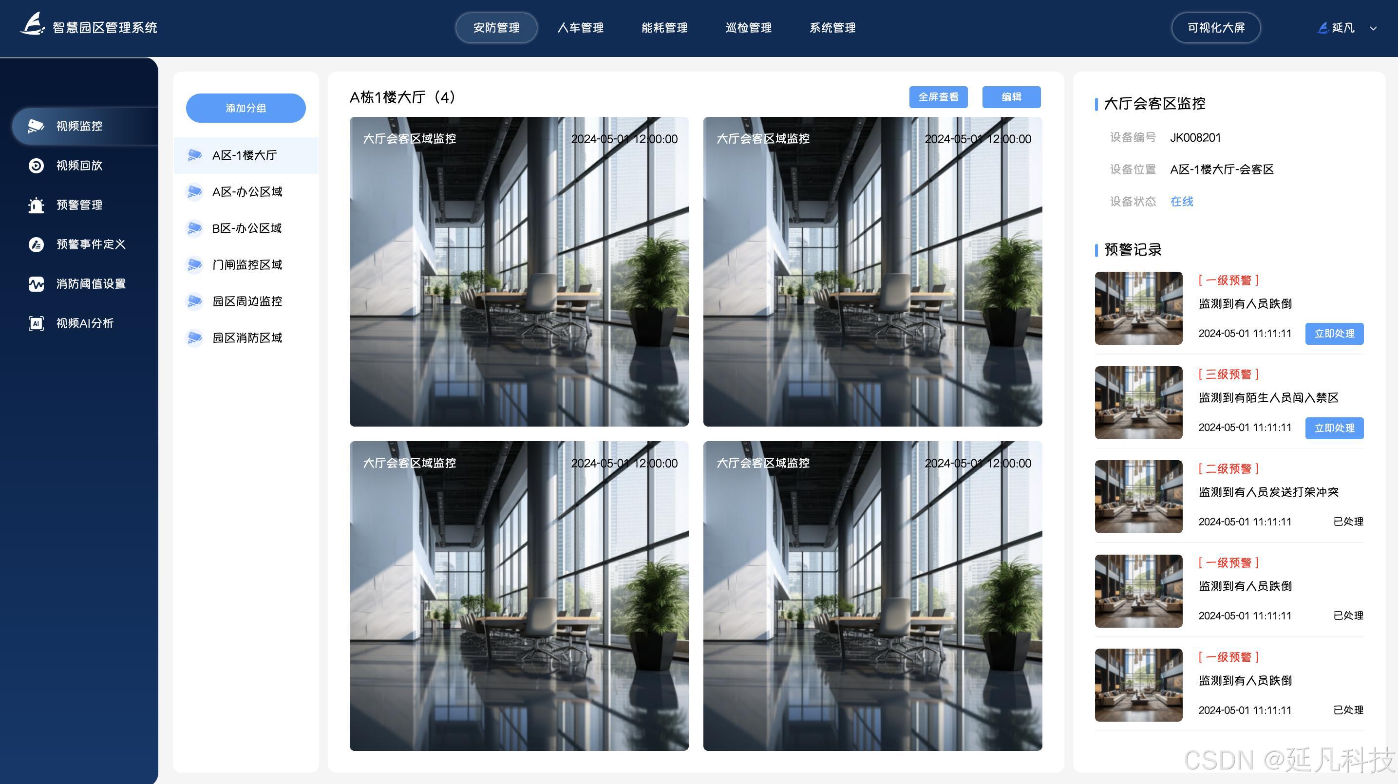 智慧园区管理系统,适用于产业园区、工业园区、物流园区、办公园区、总部园区等空间,通过AIoT物联网技术实现设备感知和智能运维,及园区安全管理、绿色能碳、智慧运维、智慧通行、视频安防、集成管理等场景,构建统一的智慧园区综合管理系统,助力成为人、物、空间全面联动的新型智慧园区。
