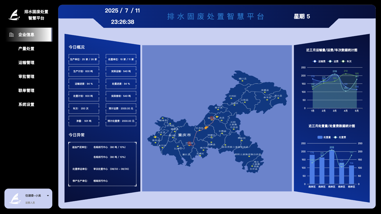 排水固废处置智慧平台是基于物联网、大数据、人工智能等技术,对城市排水系统及固体废弃物(如污泥、建筑垃圾、生活垃圾等)的收集、运输、处理、处置全流程进行智能化管理的综合平台。其核心目标是提升排水与固废处置的效率、降低成本、减少环境污染,并实现精细化监管。