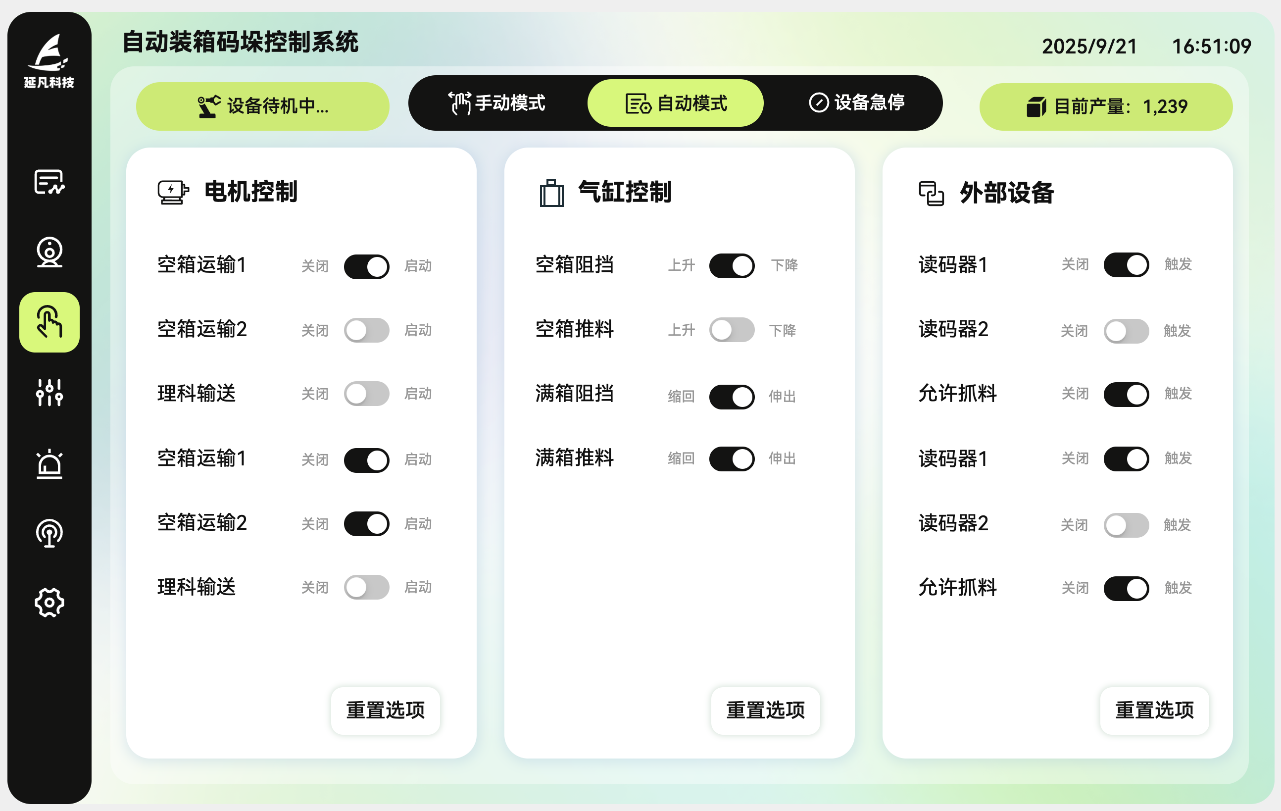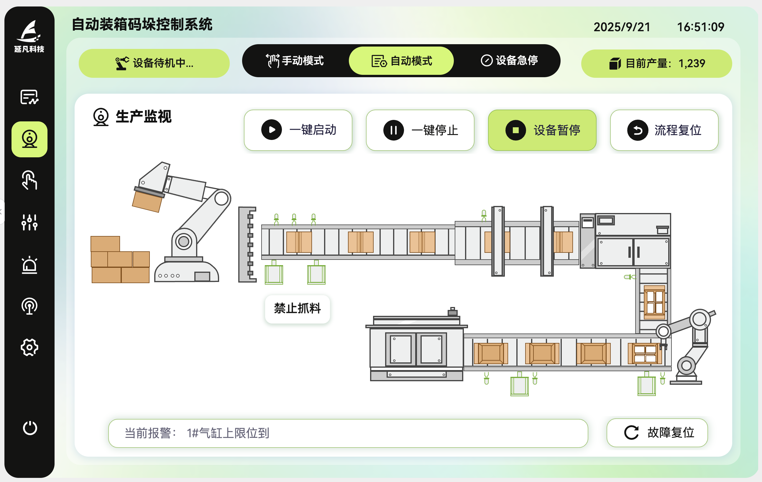 - 码垛检测:重量传感器核验单垛重量(是否符合标准)、光电传感器检测垛体是否倾斜(防止坍塌);