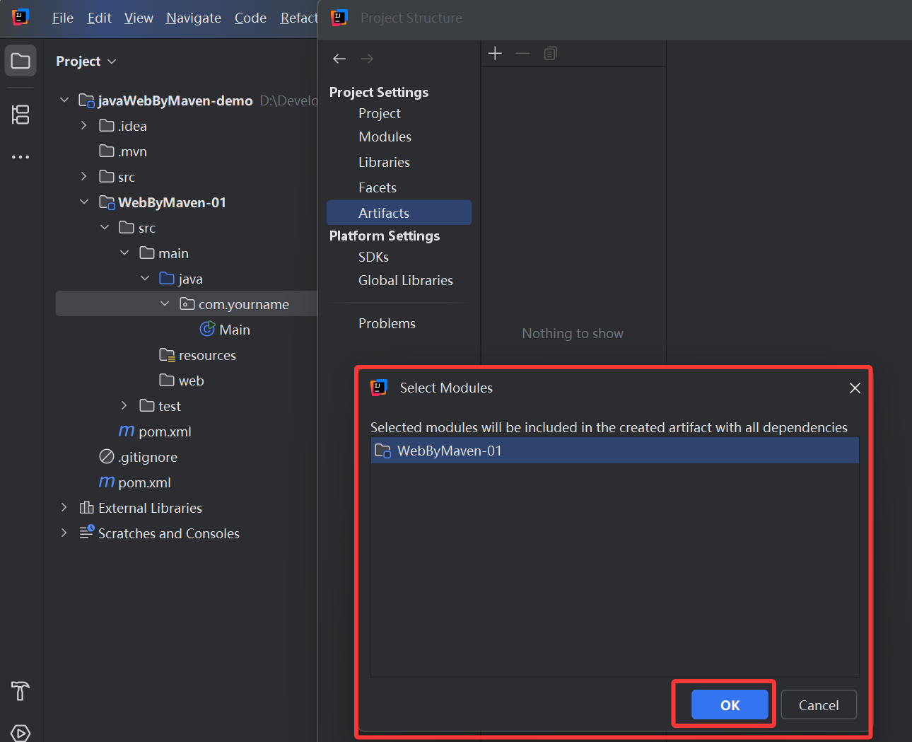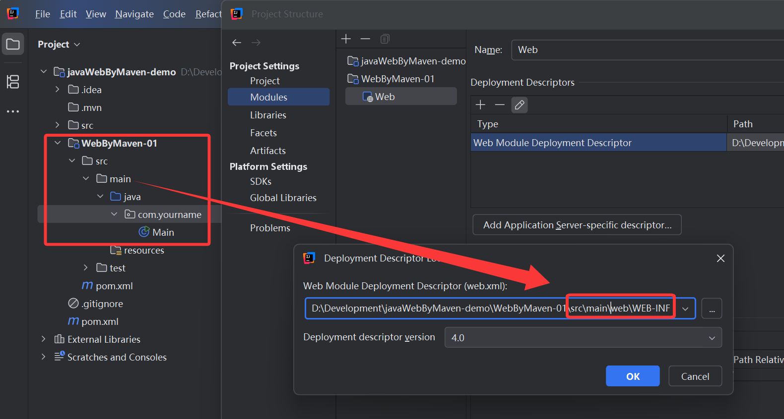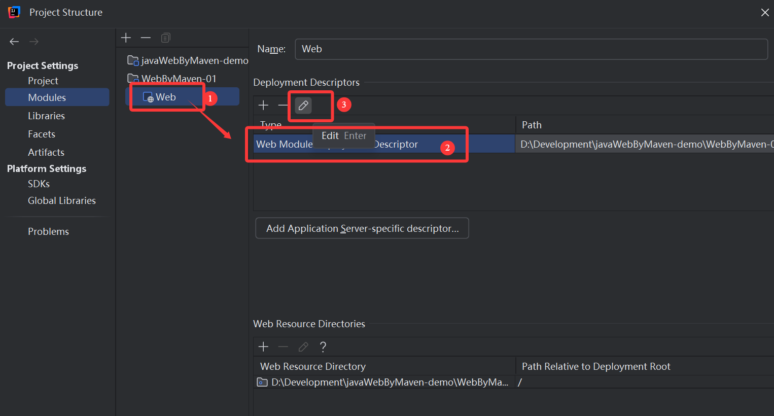 选择modules-子模块WebByMaven-01,点击 + ,选择web