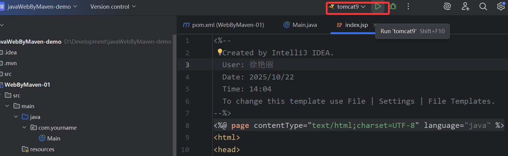 8.运行tomcat,运行成功后即可自动调用浏览器,显示已创建的index.jsp界面。