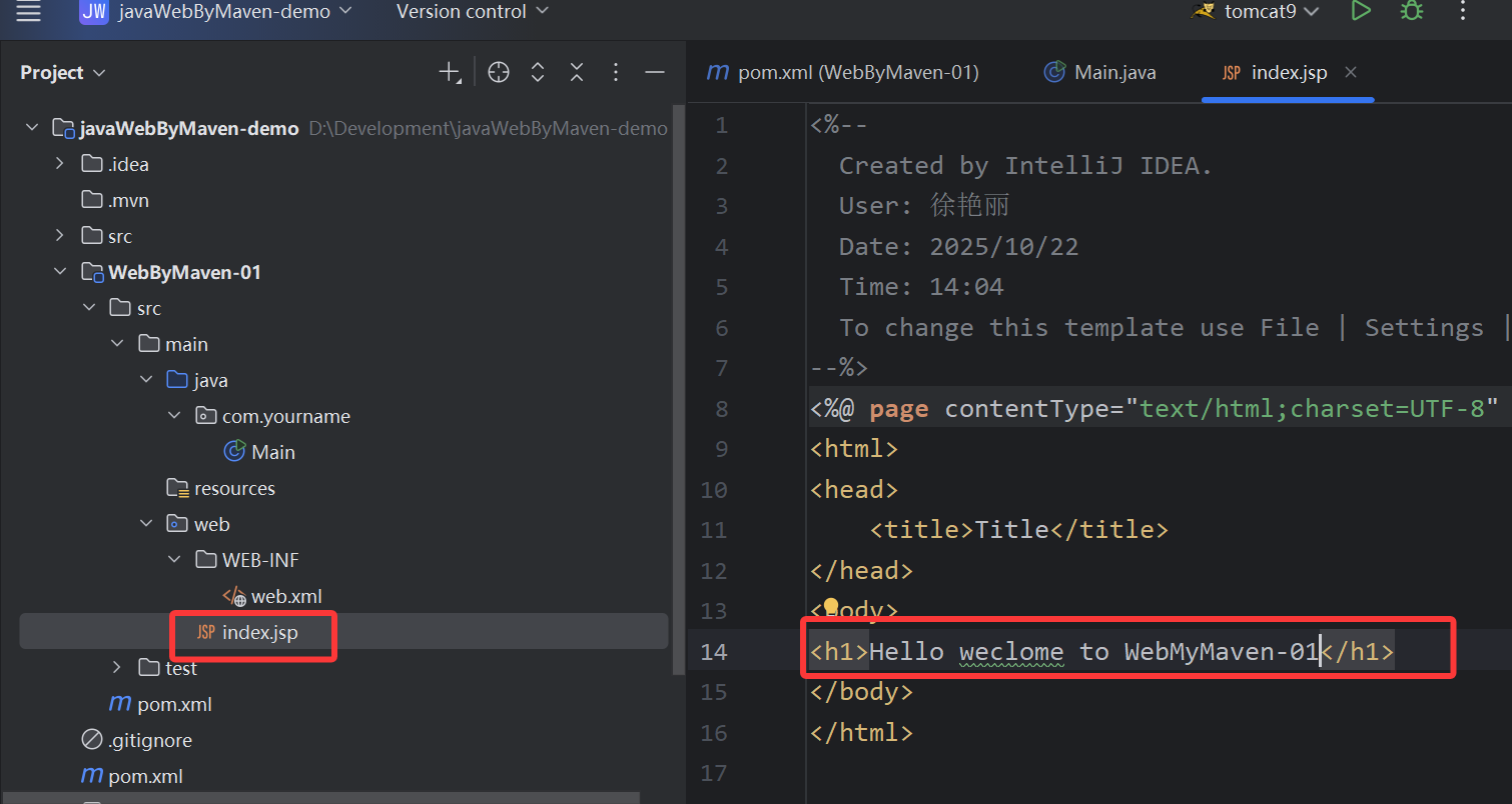 web--右键-new-jsp,输入jsp页面的名字:index.jsp,编写jsp界面,在<body>标签内增加<hl>输出语句</hl>