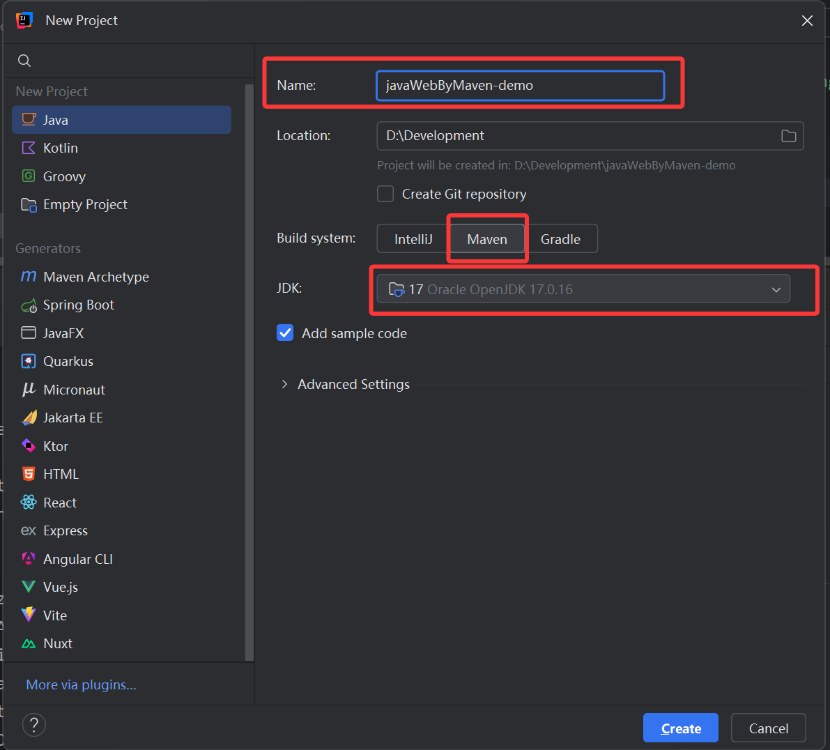 框架后面会有接入,先用maven创建一个javaWeb项目