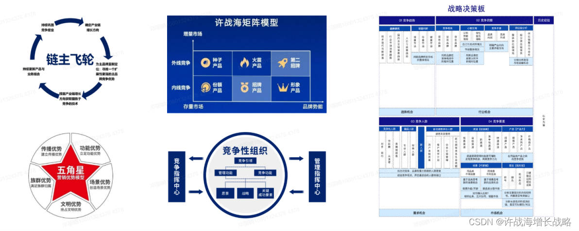 许战海咨询最大的特色和优势在于,拥有并持续创立更符合中国头部企业落地的“全球产业竞争战略模型”,从全球产业出发,拥有完整的原创竞争理论体系及战略工具,在21世纪新生代战略咨询中独树一帜,为数十家头部集团企业及上市公司提供战略咨询服务。