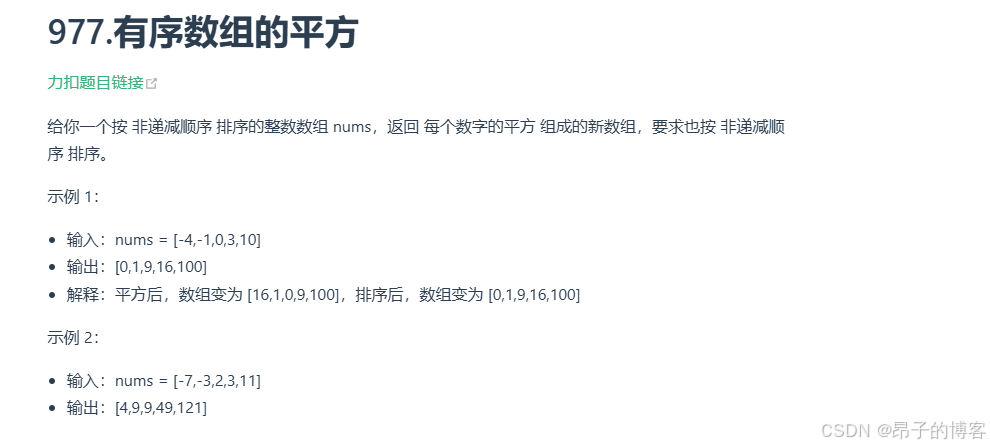 题目链接:977. 有序数组的平方 - 力扣(LeetCode)