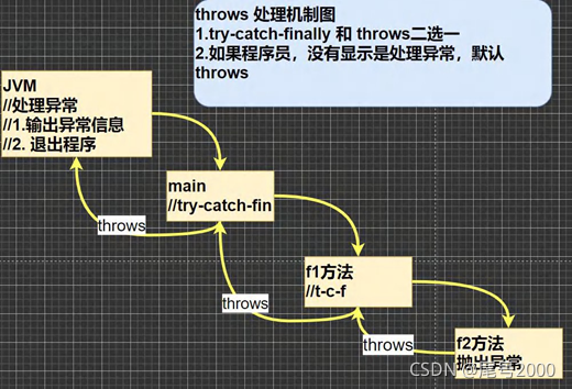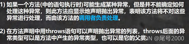 将发生的异常抛出,交给调用者(方法)来处理,最顶级的处理者就是JVM