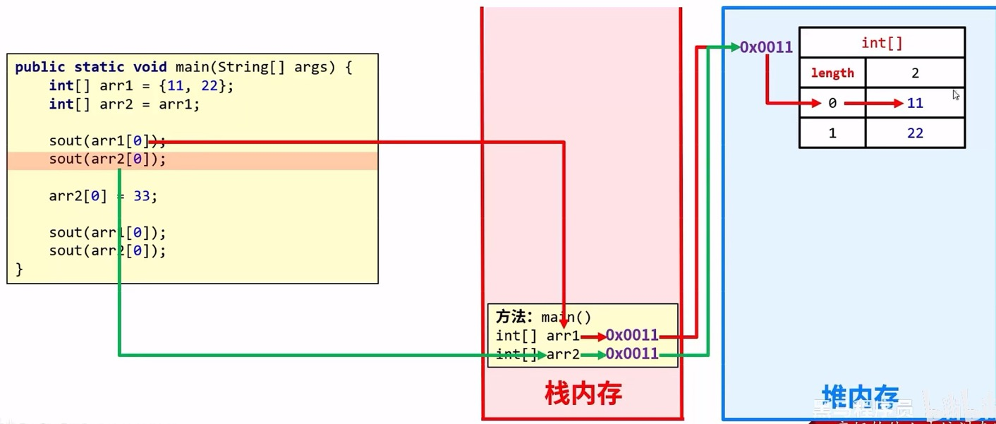 2) 数组在默认情况下是引用传递,赋的值是地址。