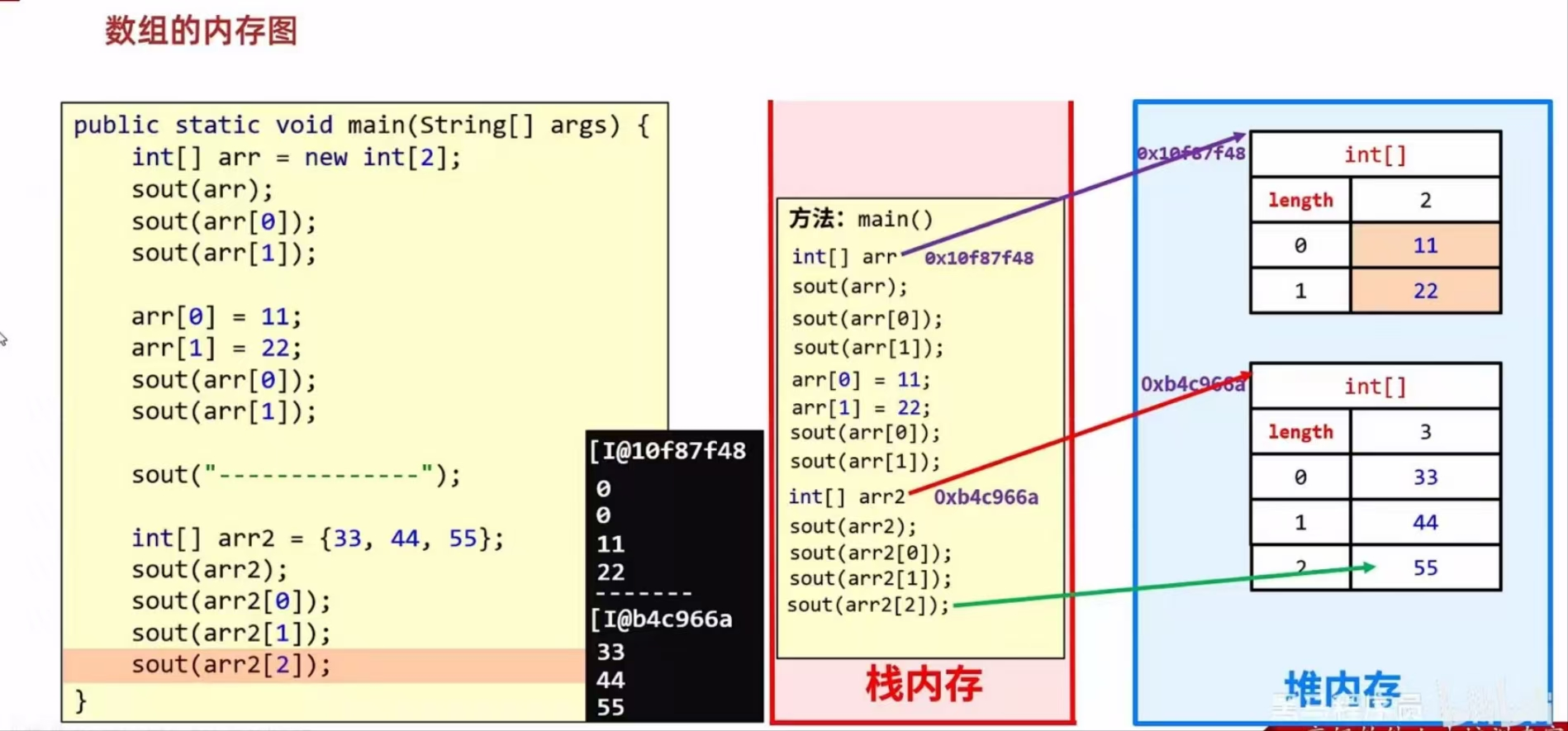 动态初始化:手动指定数组长度,系统会给出默认初始化值
