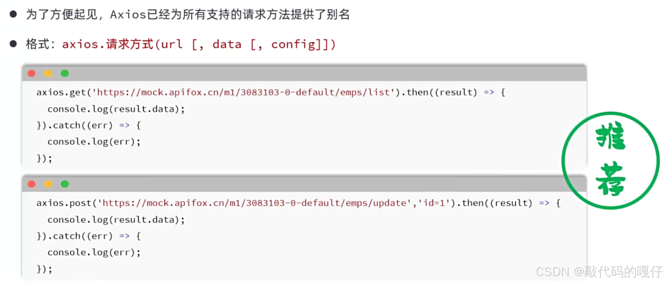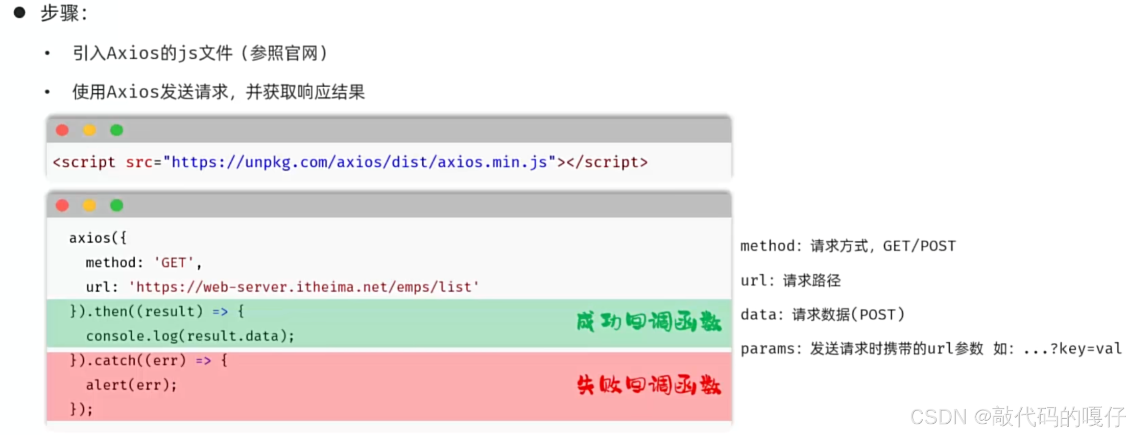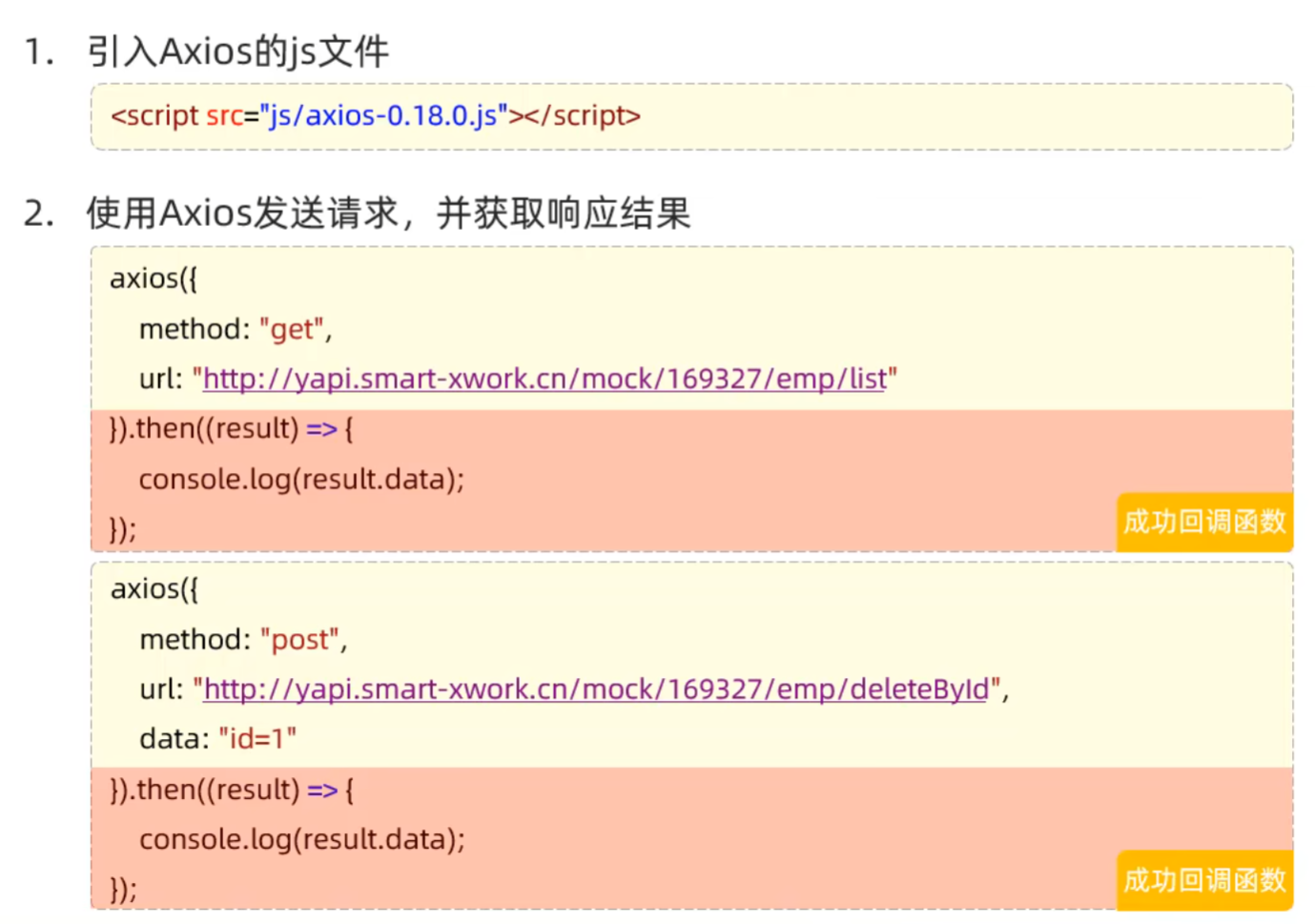 含义:Axios对原生的Ajax进行封装,简化书写,快速开发。