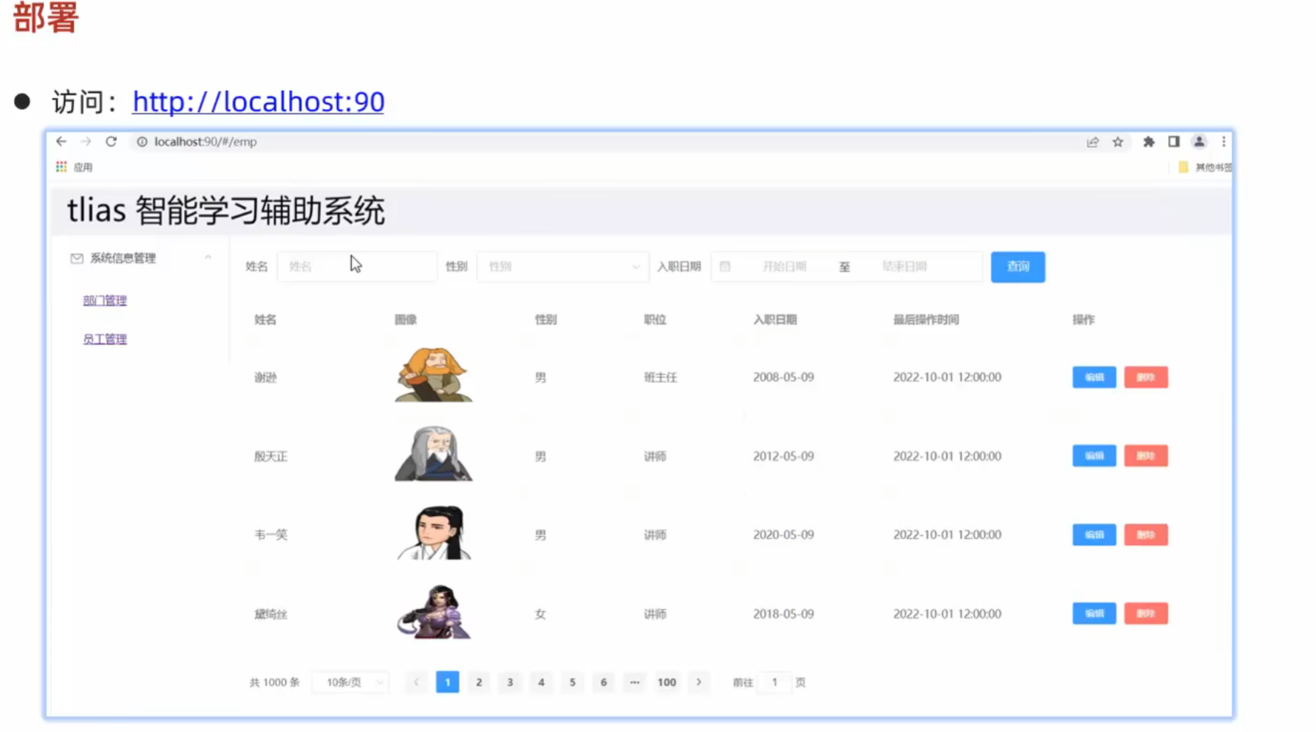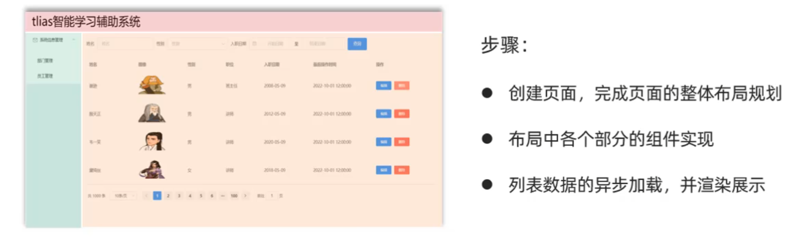案例:根据页面原型完成员工管理页面开发,并通过Axios完成数据异步加载