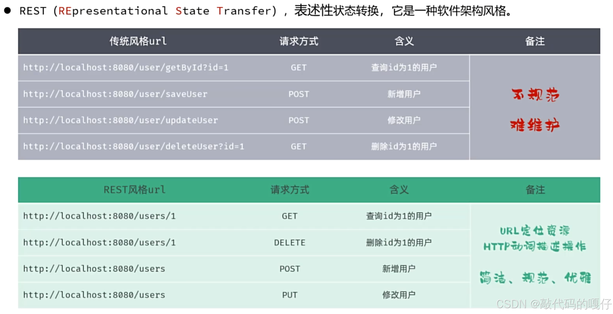 1.REST是风格,是约定方式,约定不是规定,可以被打破。
