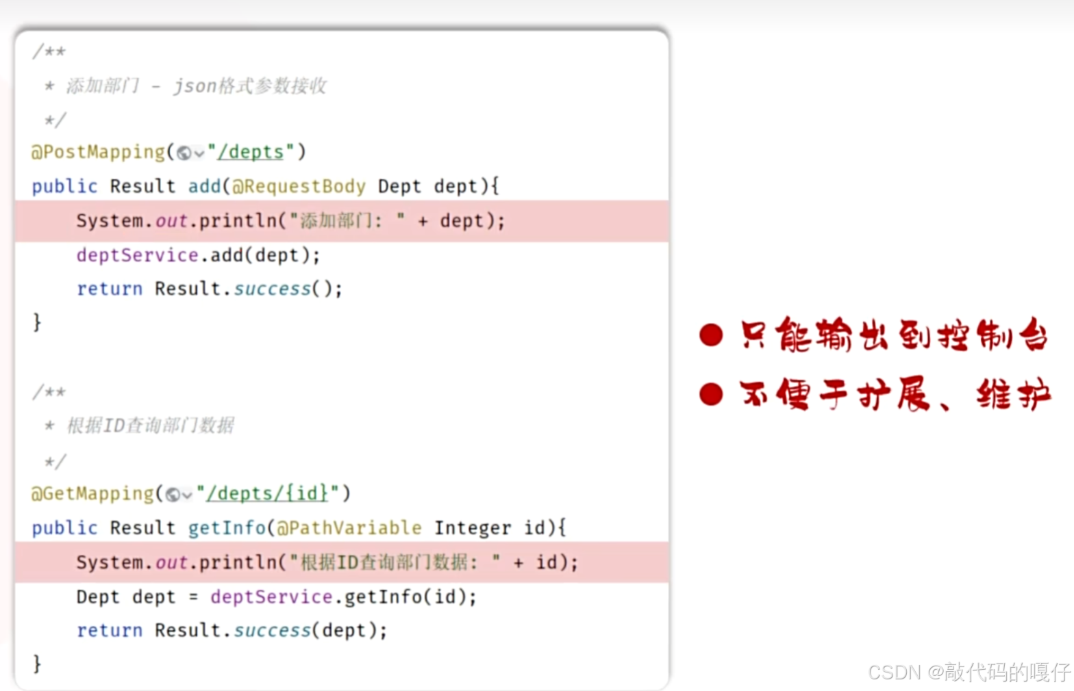 这里的 Dept dept 能直接作为方法参数,核心原因是 Dept 是一个「类」(实体类),而 dept 是这个类的「对象引用变量」—— 在 Java 中,类本身就可以作为数据类型(引用类型)来使用,用于声明变量、作为方法参数或返回值。