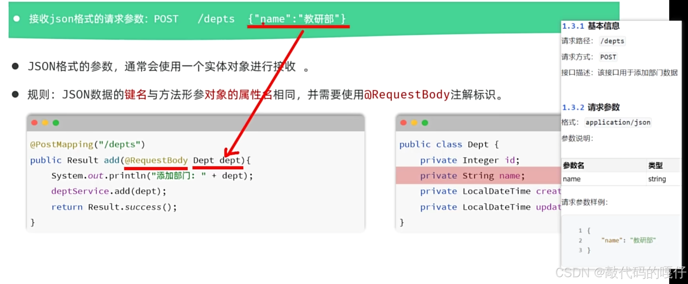 注:@RequestBody注解可以将一个json格式的请求参数,直接封装到一个对象当中。
