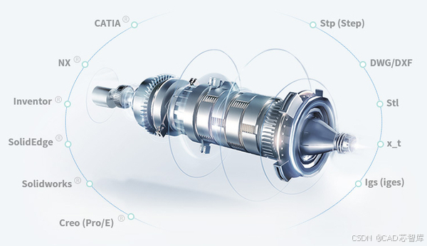 2. 中望3D跟Proe/Creo、UG/NX、Solidworks、Catia一样的三维CAD软件,可以较好地兼容这些国外3D软件和常见的图纸格式(下图)。