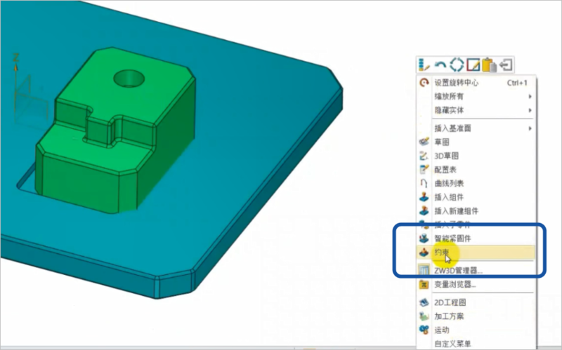 4. 退回到装配文件,使用约束功能,或者编辑约束功能创建约束,使新零件完全约束。