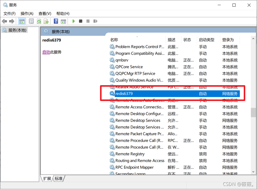 找到刚刚注册的redis 服务 启动