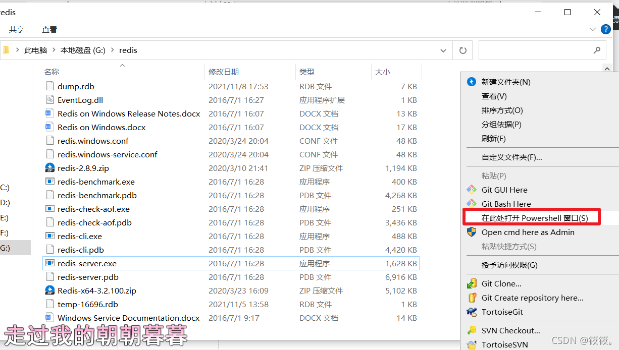 进入redis安装目录,shift+鼠标右键打开菜单,点击“在此处打开命令窗口”,成功打开cmd