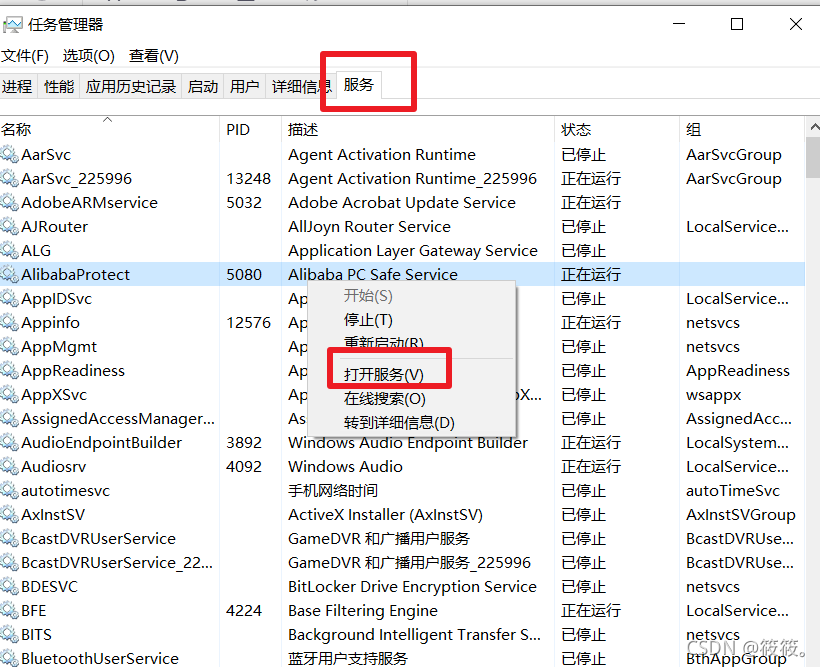 选择服务,随便找一个服务单机右键,打开服务