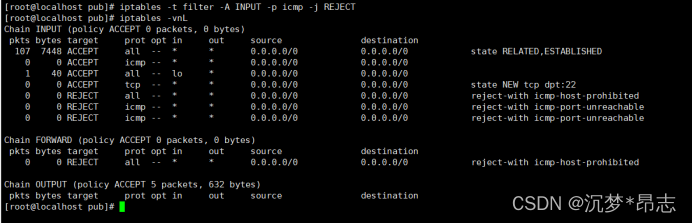 #此时其它主机需要配置关于icmp协议的控制类型为REJECT