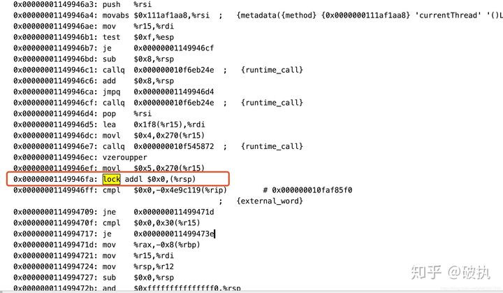 又看到了lock addl $0x0,(%rsp)指令,熟悉的配方熟悉的味道,和上面2.3章中的步骤5一摸一样,其实这里就是步骤5中代码的体现。