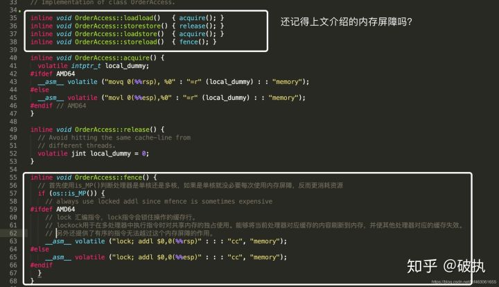 它依然是声明在orderAccess.hpp头文件中,在不同操作系统或cpu架构下有不同的实现。orderAccess_linux_x86.inline.hpp是linux系统下x86架构的实现: