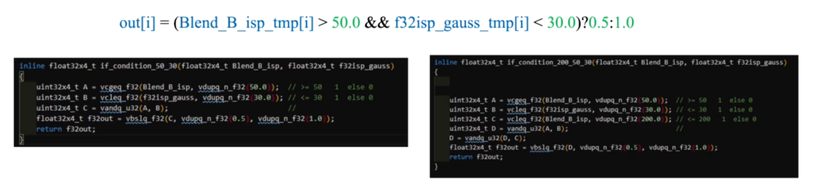 // vbsl -> Bitwise Select, 按位选择,参数为(mask, src1, src2)